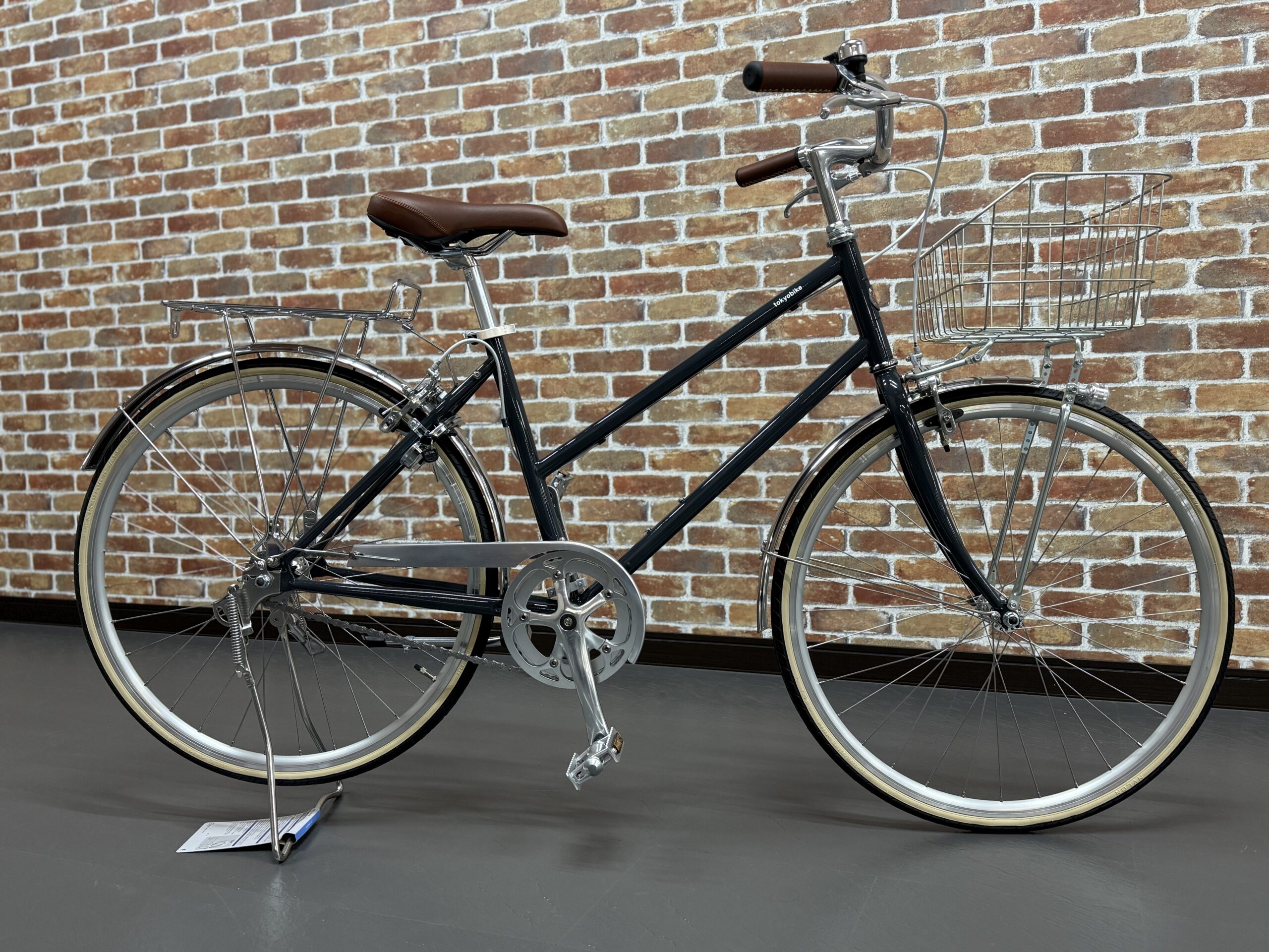 当店ではトーキョーバイクも大人気! 画像のモデルは新入学のお子様用にフル装備させていただきました。 バスケット・キャリア・両立スタンド・チェーンケース・フェンダー・ライト・ロックすべて装着しても軽量ー! なが〜く使えるトーキョーバイクおすすめです!